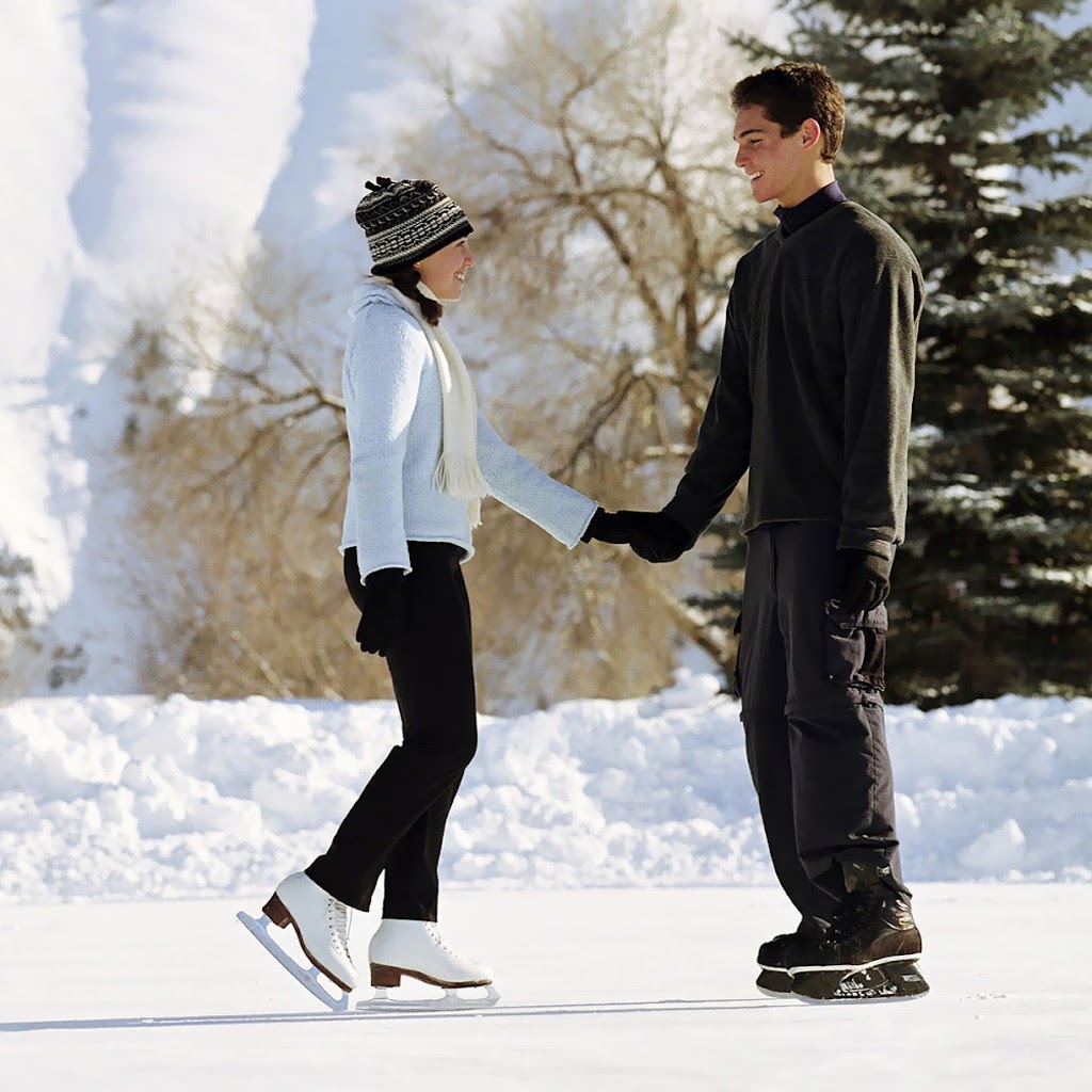 | iPad achtergrond met man en vrouw aan het schaatsen op de ijsbaan. |